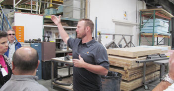 (Photo above: Sam Mieir of Composite Approach gestures while telling tour members about the company…