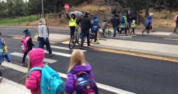 (Photo above: Features like crosswalk and center medians make our streets safer for students |…