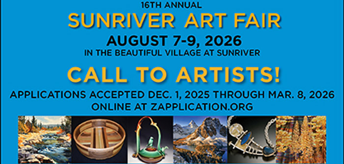 If you are an artist or know someone who would like to exhibit, now is the time to get your application ready. Applications are accepted online only at zapplication.org. Please visit sunriverartfair.org or email us at artistliaison@sunriverartfair.org for more information.