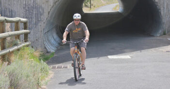 (Photo above: A cyclist rides through the tunnel on the Larkspur Trail | courtesy of Commute…