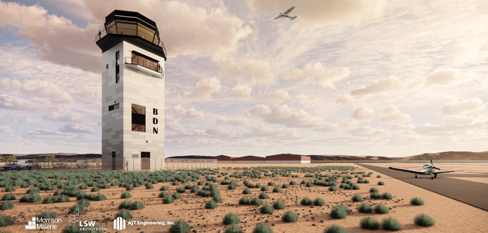 (The new first-class, state-of-the-art control tower will rank as Bend’s tallest building | Rendering courtesy of Bend Municipal Airport)