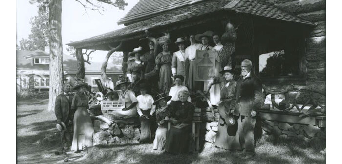 (Photo above: Central Oregon has a rich history of public conversation, one of which is illustrated by this May 1912 photo taken on the porch of the Drake Lodge. The group pictured includes Sara Ehrgott (Sara Bard Field), a well-known state organizer for the campaign for Votes for Women. It is important to note that after suffrage passed in Oregon’s November 1912 election the city of Bend had a city election the following month, December. That election was the first in the state in which women exercised their voting right. It would be another eight years before everywoman had that right and the 19th Amendment was ratified. Photo and historic credit: Deschutes County Historical Society)