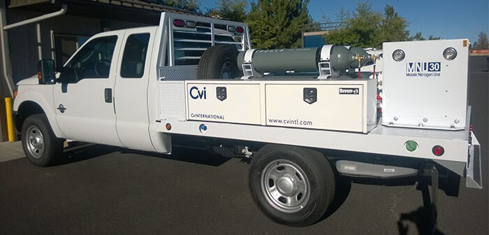 CvI develops innovative ways to provide nitrogen where it is needed most. They design and manufacture nitrogen devices for filling tires, struts, and cargo door closures in aviation ground support. They offer a mobile air nitrogen charging station for charging accumulators in wind turbines. CvI offers nitrogen devices that commercial food processing uses to inject nitrogen into packaging applications.
