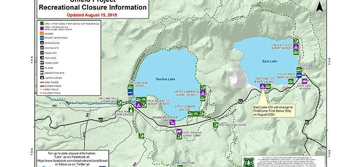 In order to allow operators to safely remove marked trees in the Caldera section of the Newberry National Volcanic Monument, some campgrounds will begin closing early for the season. Summer campsite reservations for East Lake Campground will end on August 20th, however, first-come first-serve camping will be available until operators are able to begin work. After September 3rd, Little Crater and Cinder Hill Campgrounds will stop taking campsite reservations for this season and these sites will remain as first-come first-serve campsites until operations will begin. Tree removal work will continue through the fall at various campgrounds and roadways within Newberry Caldera. Work will continue as conditions allow.