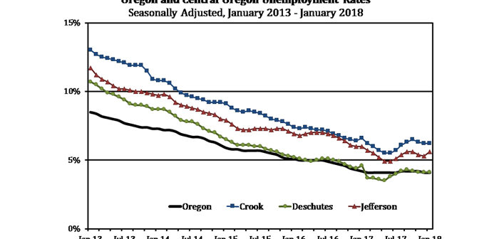 Original estimates from 2017 showed that the pace of job growth in Deschutes County was beginning to slow. This slowdown was confirmed by recent revisions using payroll tax records. However, the region is still adding jobs at a fast pace with a particularly large jump in Deschutes County’s seasonally adjusted employment for January. Growth is not limited to our metro areas as Jefferson County posted some of the fastest rates of job growth amongst Oregon’s non-metro counties.