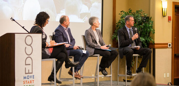 Fellow panelists included Lee, OSU-Cascades Vice President Becky Johnson and Wes Price – EDCO’s Board President and partner in the Central Oregon accounting firm Price Fronk & Co. – who expressed concern about addressing pressing infrastructure needs.