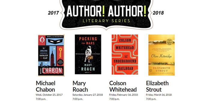 In January look for March Roach author of seven books including Grunt: The Curious Science of Humans at War and Packing for Mars: The Curious Science of Life in the Void. February offers Colson Whitehead author of six novels including The Underground Railroad. March features Elizabeth Strout author of six books including her 2009 Pulitzer Prize-winning novel Olive Kitteridge.