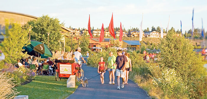 This summer, Old Mill District launched programs encouraging retail and restaurant employees and patrons to choose alternative transportation options. Noelle Fredland, marketing director for the Old Mill District & Les Schwab Amphitheater, adds, “We are constantly trying to be proactive to enhance the experiences of our guests and we are committed to sustainability practices that enhance our community. As Bend grows, it is important.”
