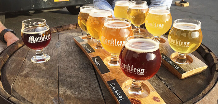 Located on High Desert Lane (a brief stroll from Craft), Monkless fills a much needed niche in the local brew scene, providing a plethora of delicious Belgian-style ales to tantalize the palette, one that demands an occasional respite from the IPA haze craze. Having received numerous awards from the likes of USA Beer Ratings and Oregon Beer Awards, including 2018 Brewery of the Year and a Gold Medal for Friar’s Festivus respectively, Todd Clement, an organic chemist (PhD) turned brewer, is certainly making his mark. Patience and devotion to his craft reflect Todd’s reverence for the monks who originally perfected this style of beer, in part, to provide an alternative to the contaminated drinking water of Old World Europe. Along with his wife Robin, the couple sought to solve their own problem: How to provide the underserved local community with a hang-out close to home that offers an alternative type of beer, namely Belgian-style ales? “We’re a little off the beaten path,” says Robin, “so if you come here, you seek us out,” and that makes everyone happy!