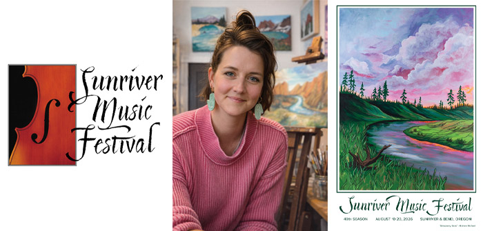 Each year, the Festival features an artist local to Central Oregon for the season’s poster. Artists were invited to submit their artwork for consideration and a jury of professional artists from the Artists’ Gallery Sunriver assists in making the final selection. Michael’s 18×24” acrylic on canvas painting, which has been custom framed by Eastlake Framing, will be auctioned at the Raise the Baton fundraising party on July 18 in Bend. Details and tickets at sunrivermusic.org.